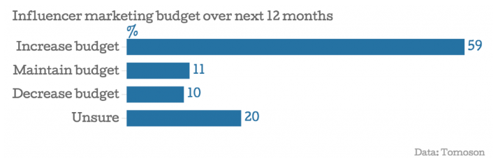 Influence marketing, as a way to promote products and services through opinion leaders and popular bloggers, according to Tomoson’s research, was rated as the fastest growing online channel for customer acquisition, ahead of organic search, contextual advertising and email marketing. Affiliate marketing has shown the worst results in this category, and only 5% of businesses consider it to be the fastest growing channel.