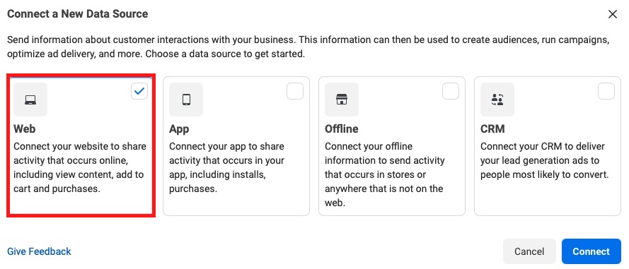 1. Connect Facebook pixel using a partner integration