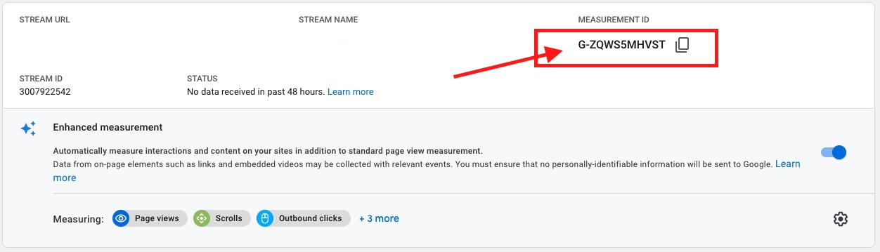 1.6. Set up your web stream ➜ enter your website’s URL ➜ enter the stream’s name