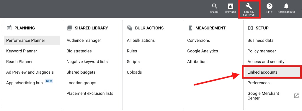 2.1. Navigate to the Tools and Settings tab ➜ select Linked account